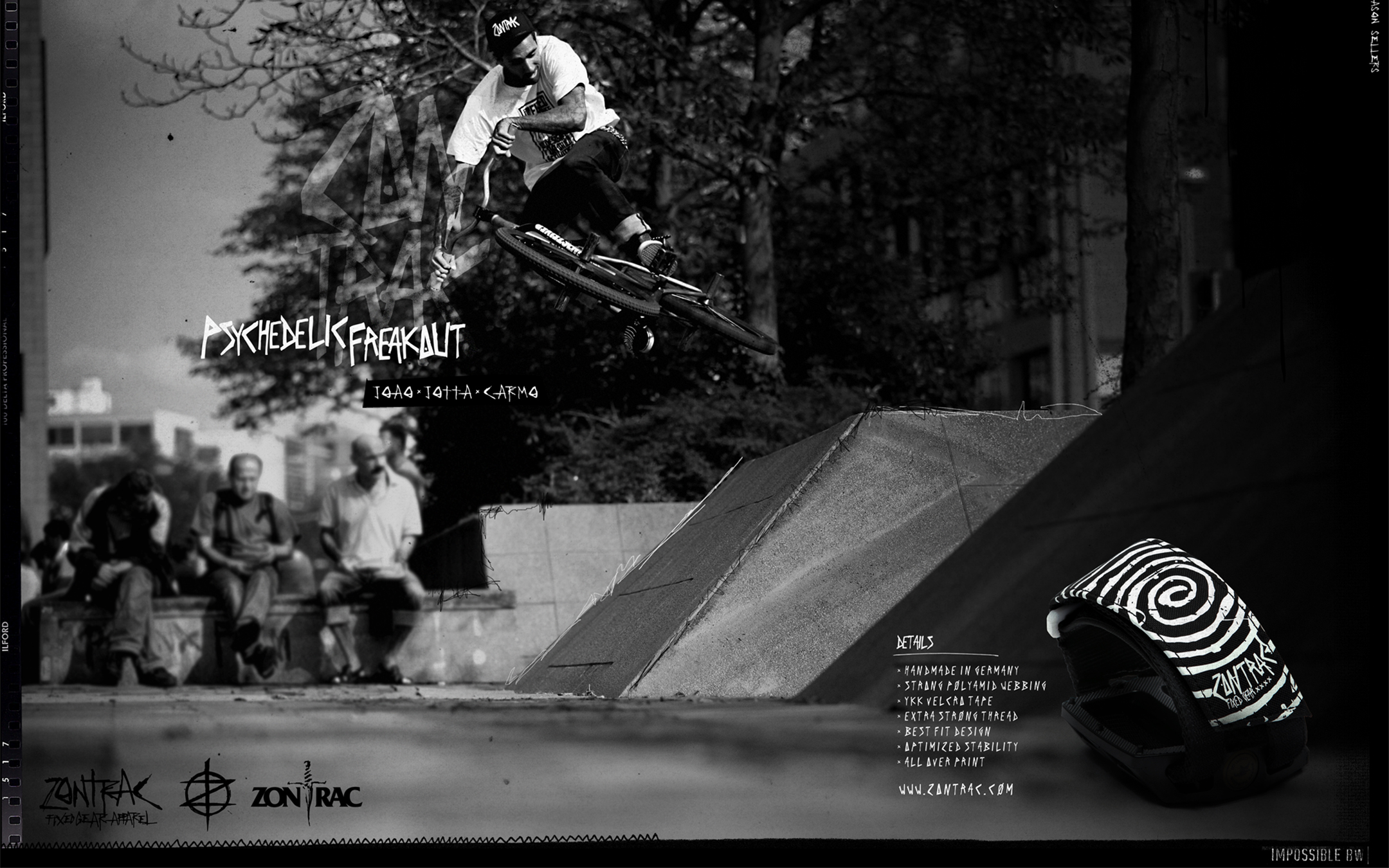 These ads were created for ZONTRAC and their Daggerz Fixed Gear Team. The designs combine raw street photography with bold graphic elements to reflect the energy, speed, and DIY spirit of the fixed gear scene. Each piece was made to capture the underground attitude of the riders and bring ZONTRAC’s identity to life.