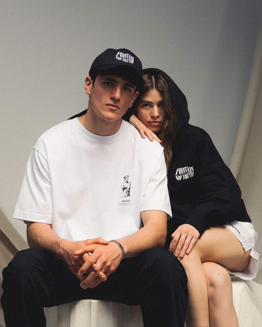 The Greek Myth Capsule for Asphaltgold translates ancient narratives into contemporary graphic expression. I designed a series of textiles that merge mythological symbolism with bold typographic treatments, creating visual tension between classical imagery and modern design language. Distorted letterforms like “Eternal Life” and “Fountain of Youth” evoke the timeless search for immortality, while clean serif typography on pieces such as “True Romance” adds contrast and clarity. By combining statuesque motifs with expressive type, the collection bridges myth, culture, and aesthetics in a distinctly modern way.