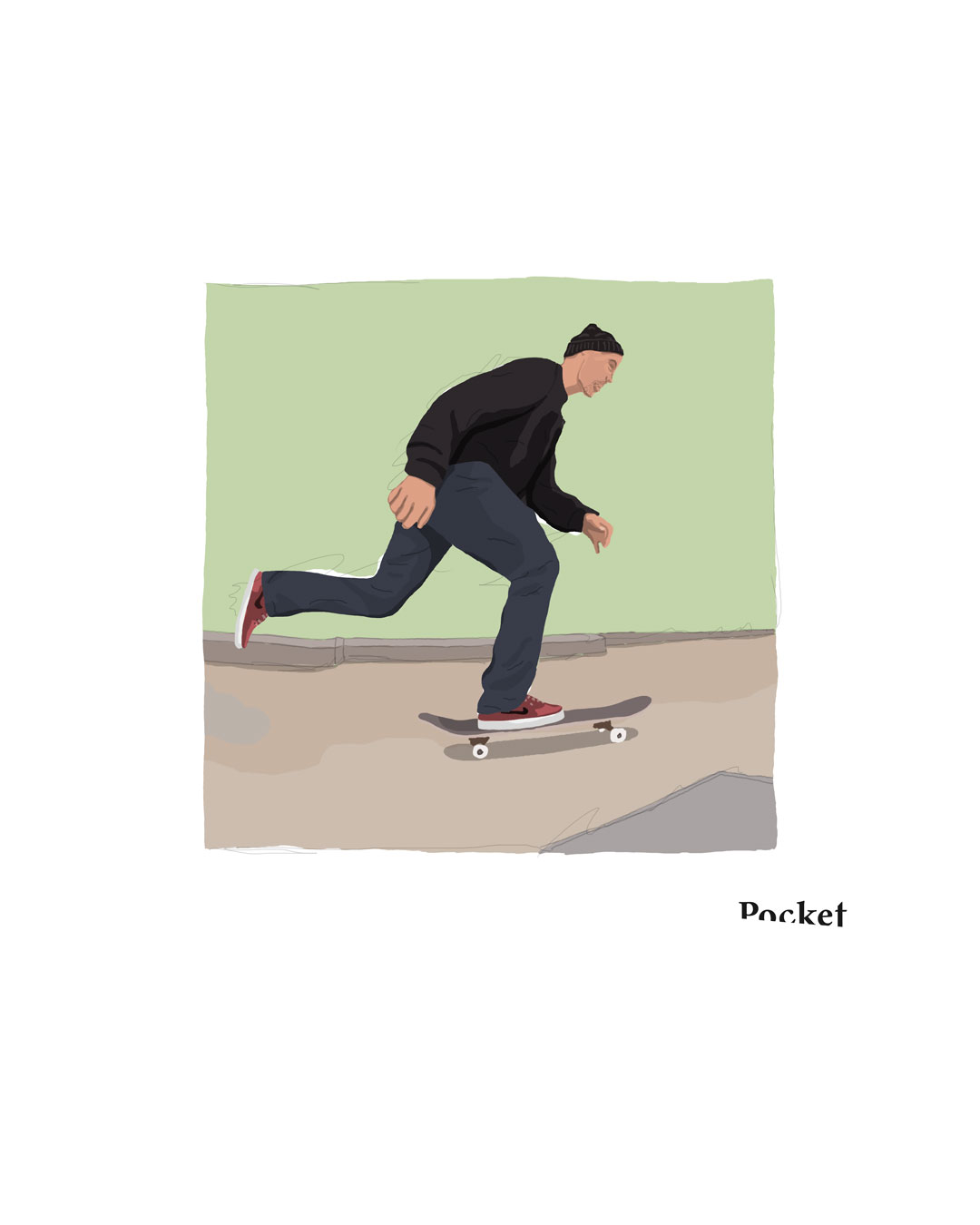 For the release of their first book-format magazine, I had the chance to contribute illustrations to Pocket Skate Mag. The theme was “A Tribute to Mongo Push”, and I illustrated Gino, Josh, and Jesus, capturing their unmistakable styles on the board.