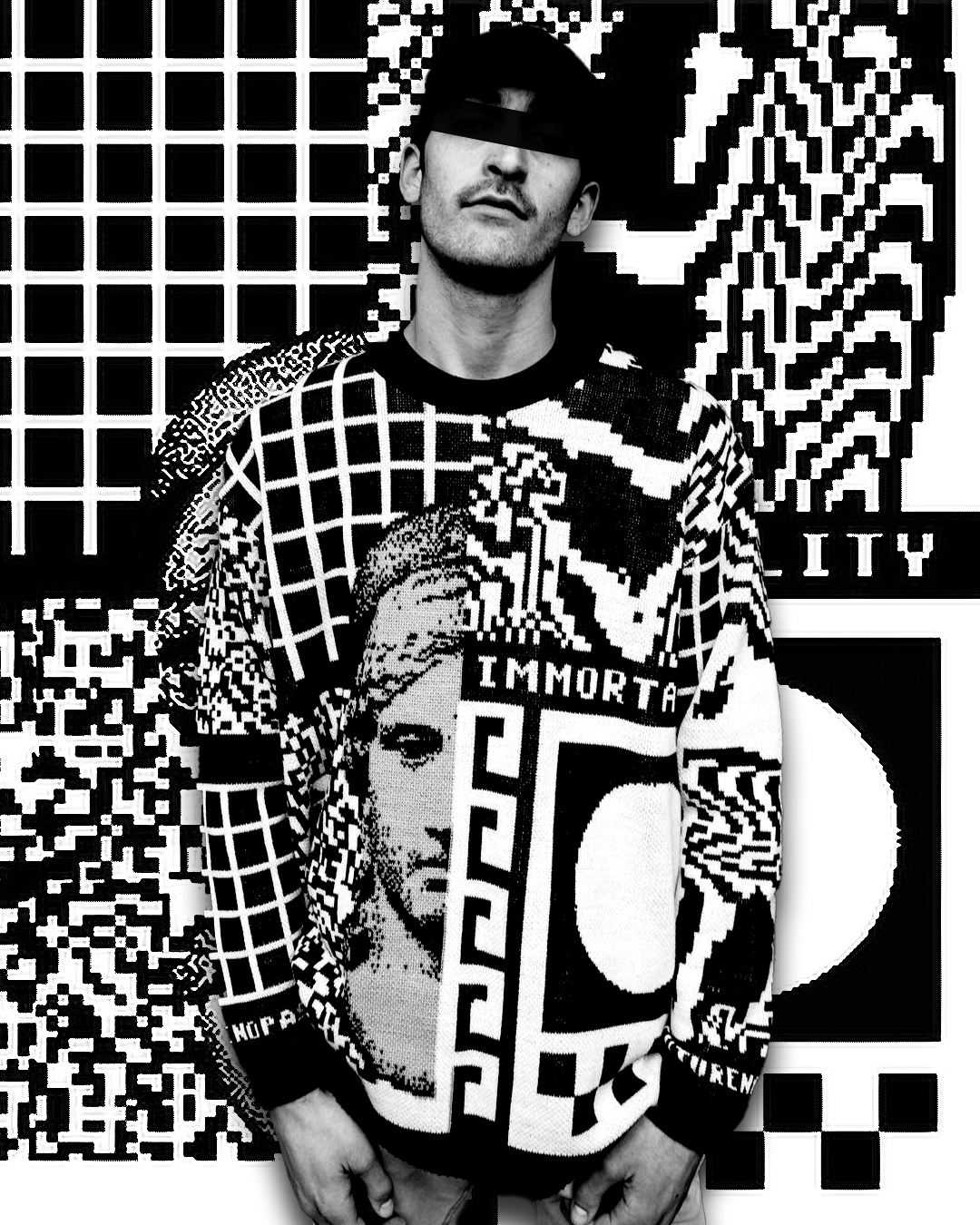 For NoFutureNoPast I designed this knitted sweater with a strong 8-bit aesthetic. The graphics, inspired by glitch and VHS distortion, translated seamlessly into the knit structure, turning digital noise into textile patterns.