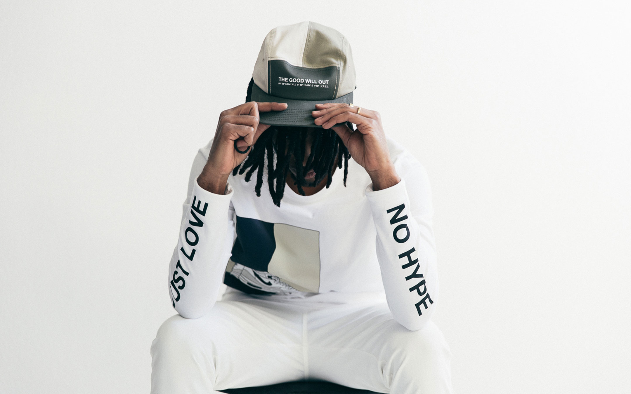 The collection was expanded with caps and trench coats featuring the slogan “No Hype Just Love” printed boldly on the sleeves. On the back shoulder, each piece carried personalized geotags pointing directly to the stores – turning every garment into a wearable map.