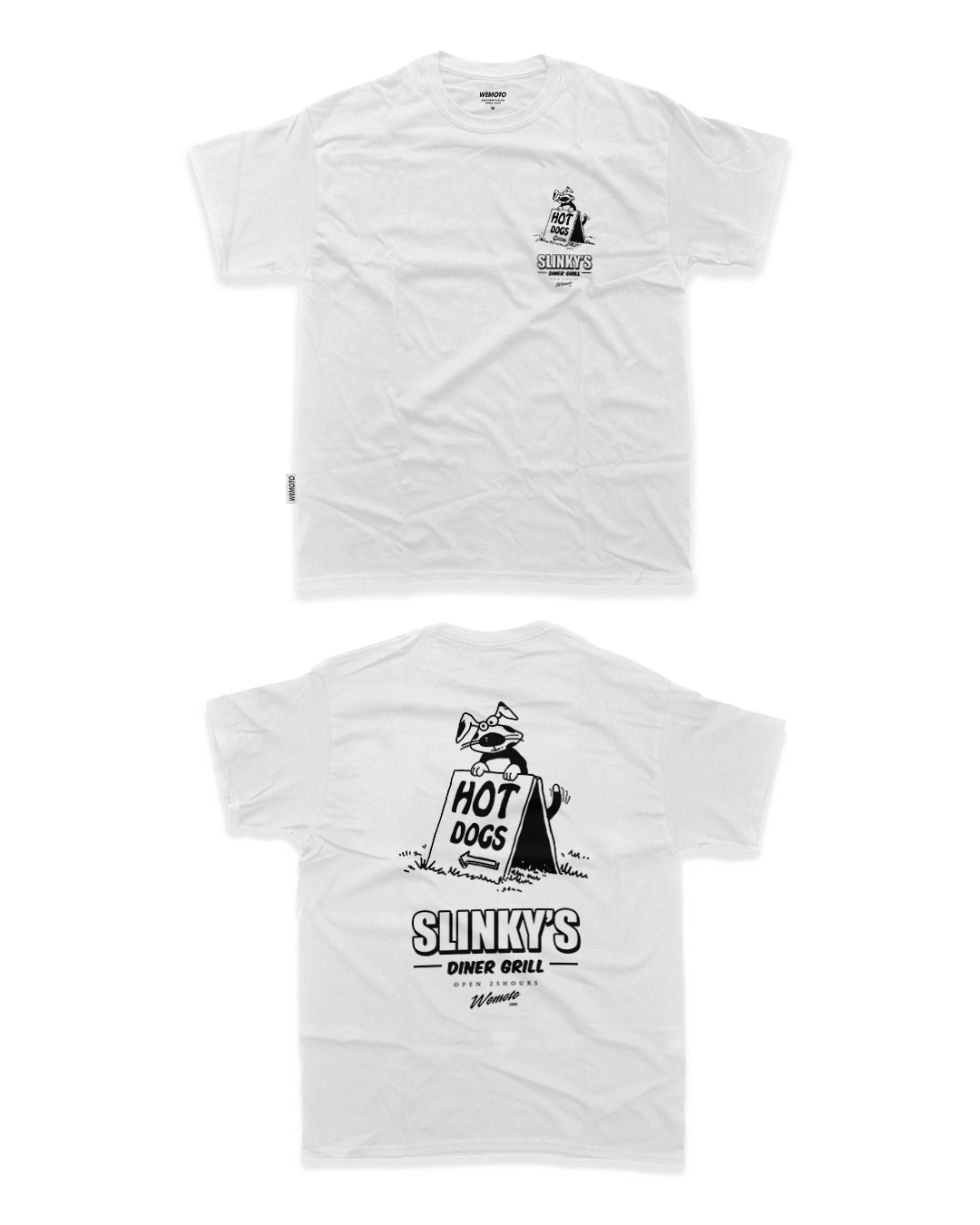 For Wemoto Clothing I created a series of playful graphic T-shirt designs, combining hand-drawn illustrations with bold typography. The artworks feature humorous, cartoon-inspired characters such as “Slinky’s Hot Dog Diner Dog,” “Twizzle the Cat,” and a tongue-in-cheek “Taxi” motif. Each design was translated into large back prints and smaller chest prints, maintaining a balance between minimal linework and strong visual impact. The collection highlights my focus on illustration-driven concepts with a graphic clarity that fits seamlessly into Wemoto’s visual language.