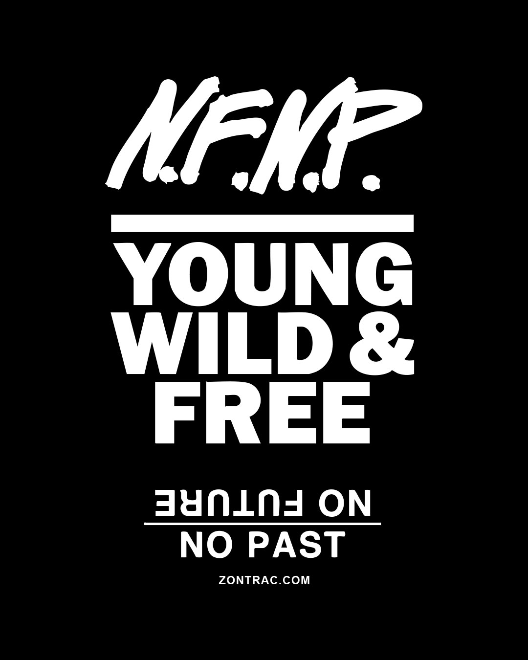 This T-shirt design was created for the ZONTRAC x NFNP collaboration. Bold typography and a raw, street-inspired look capture the spirit of freedom, rebellion, and youth culture. The mirrored message “No Future / No Past” underlines the idea of living in the moment — unapologetically young, wild, and free.
