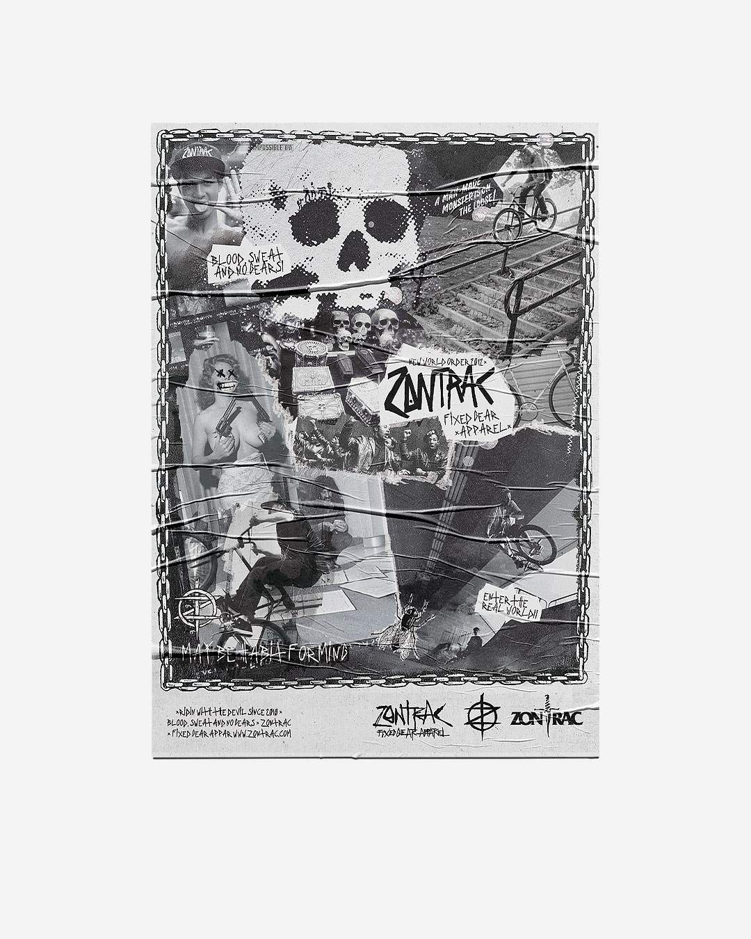 These ads were created for ZONTRAC and their Fixed Gear Line. The designs combine raw street photography with bold graphic elements to reflect the energy, speed, and DIY spirit of the fixed gear scene. Each piece was made to capture the underground attitude of the riders and bring ZONTRAC’s identity to life.