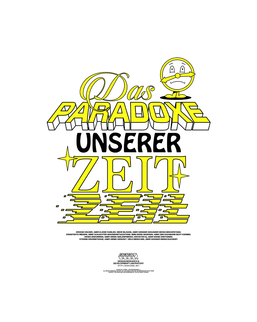This in-house poster design takes a critical look at the contradictions of our modern society. Through bold typography and playful graphics, it contrasts progress and comfort with the loss of balance, wisdom, and humanity. A visual statement meant to provoke thought and spark reflection.