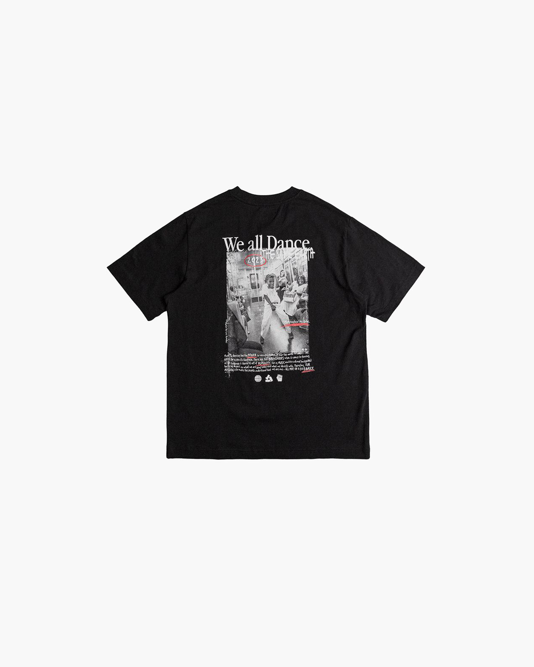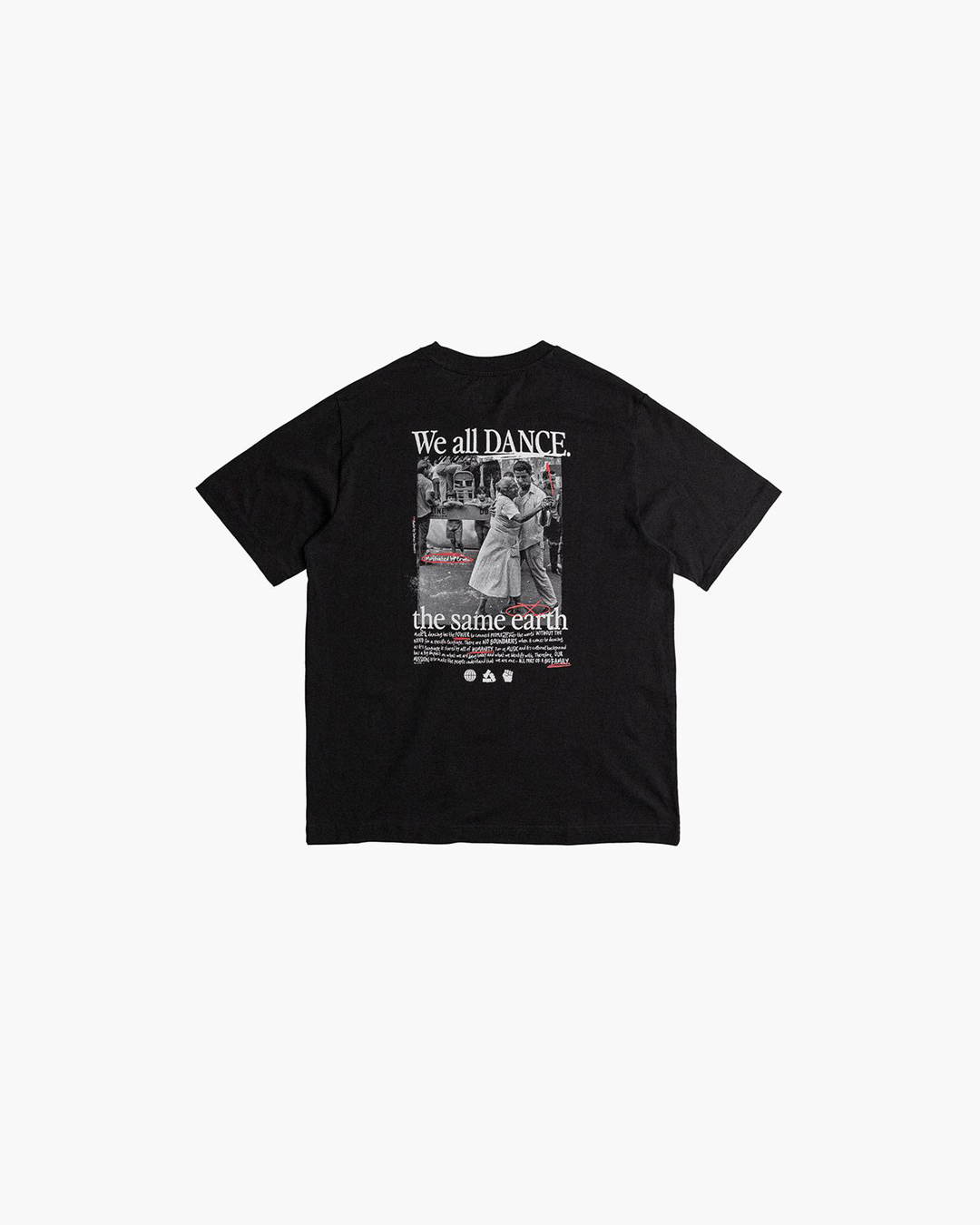 I designed two t-shirts for this project, featuring black-and-white photography combined with bold typography and red graphic accents. The visuals symbolize unity, cultural exchange, and the power of togetherness — a reminder that despite our differences, we share the same ground.