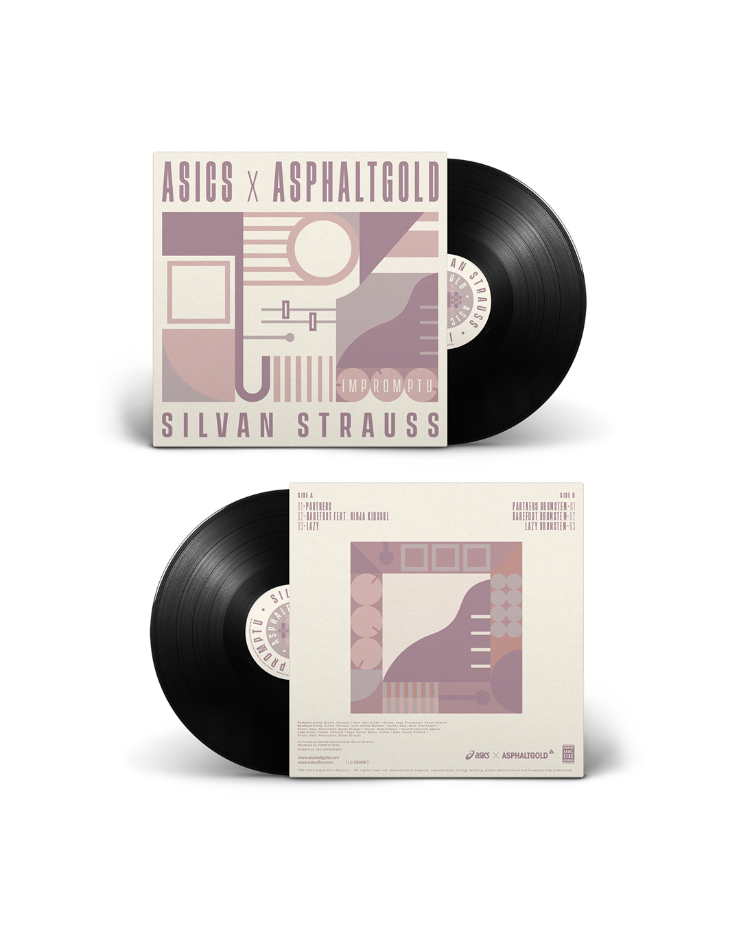 The custom logo appears on both the insole and the shoebox, tying the product back to its core identity. To celebrate the launch, Asphaltgold teamed up with jazz drummer Silvan Strauss, releasing an exclusive vinyl record. I designed the record artwork as well, drawing inspiration from the sneaker’s color palette and merging it with a graphic jazz aesthetic— rhythmic shapes, abstract compositions, and harmonious tones.