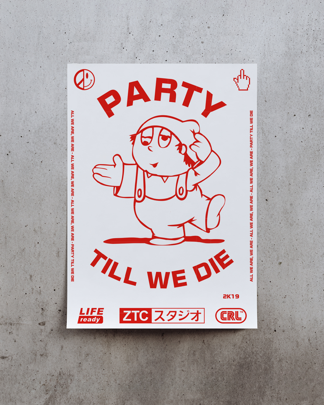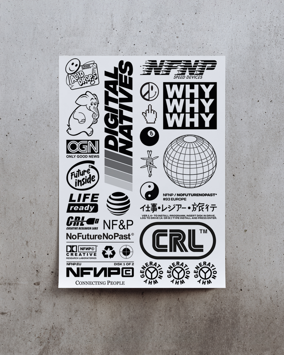 For a group exhibition organized by Substanz der Stadt, I contributed three poster designs and an audiovisual installation. My work explored the concept of digital natives, reflecting on identity, technology, and pop culture. The posters combined bold typography, graphic symbolism, and cultural references, while the accompanying video installation, paired with abstract sound, created an immersive chamber experience. Five artists participated in the exhibition, each offering their own perspective — mine centered on the aesthetics and contradictions of growing up in a fully digitalized world.