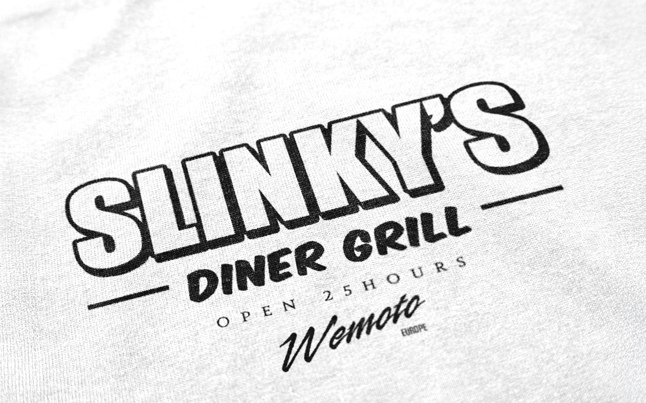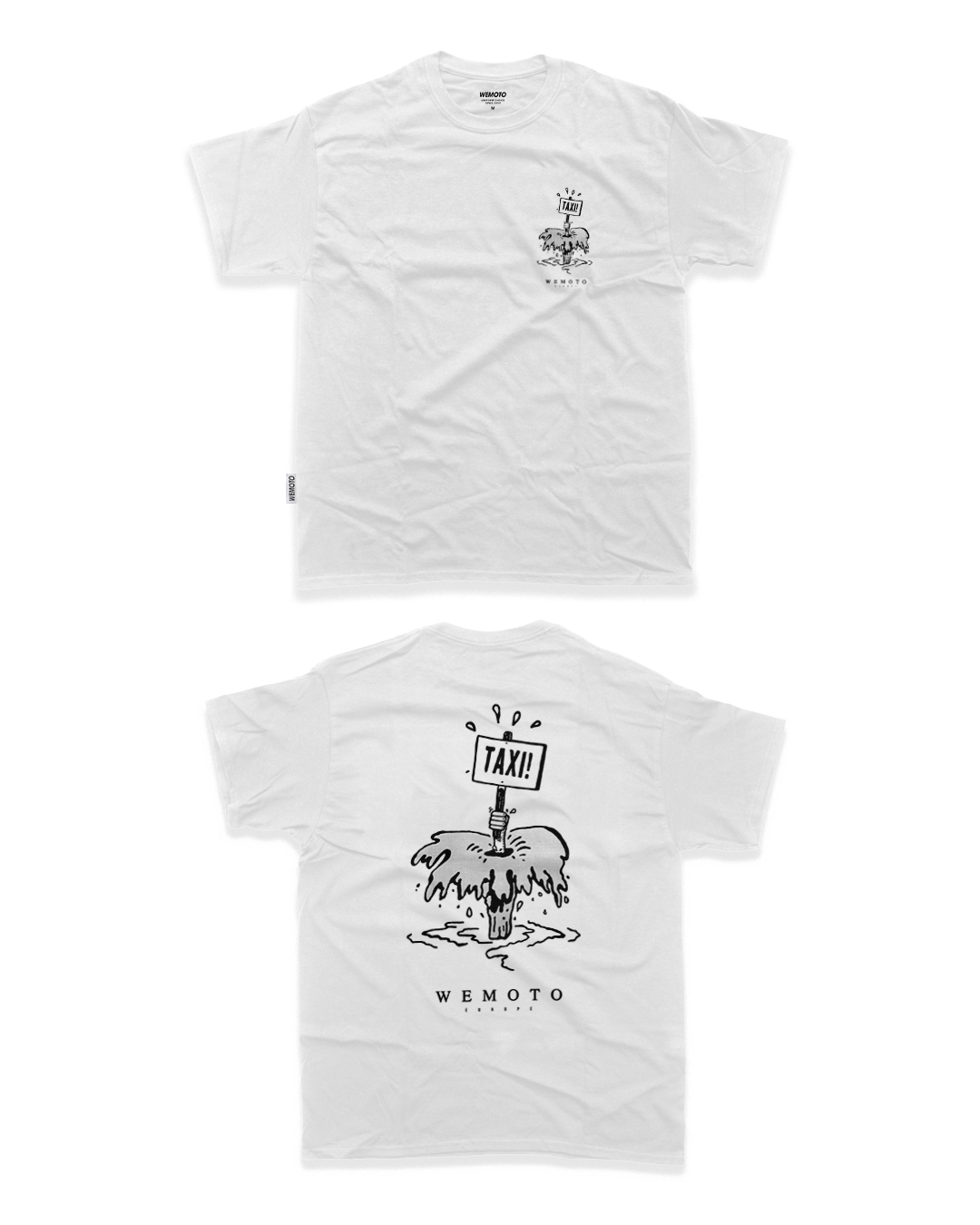 For Wemoto Clothing I created a series of playful graphic T-shirt designs, combining hand-drawn illustrations with bold typography. The artworks feature humorous, cartoon-inspired characters such as “Slinky’s Hot Dog Diner Dog,” “Twizzle the Cat,” and a tongue-in-cheek “Taxi” motif. Each design was translated into large back prints and smaller chest prints, maintaining a balance between minimal linework and strong visual impact. The collection highlights my focus on illustration-driven concepts with a graphic clarity that fits seamlessly into Wemoto’s visual language.